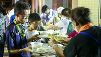 范女士與同伴找各種便利店買吃的,但基本上都不開門,要不就是被搶購一空,街頭有機構發放免費食物。