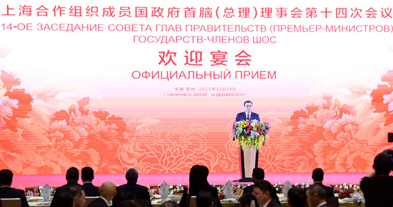在北京會(huì)見哈薩克斯坦總理后,李克強(qiáng)總理14日下午立即飛赴河南鄭州,出席上海合作組織成員國(guó)政府首腦(總理)理事會(huì)第十四次會(huì)議。當(dāng)晚19時(shí)許,李克強(qiáng)與上合組織各國(guó)領(lǐng)導(dǎo)人在鄭州相會(huì),共同參觀河南省與上合組織成員國(guó)合作成果展,隨后舉行宴會(huì)歡迎外賓。
